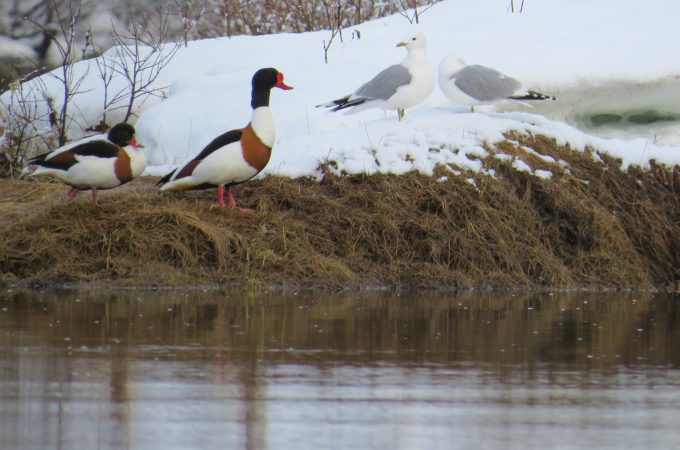 To gravender ble nylig observert ved øra ovenfor Gammelbrua på Storslett. Gravanda graver reirkammer i sand eller jord, men kan også hekke under steinblokker eller båthus. Gravanda, eller Tadorna Tadorna, er en gåsestor og gåseaktig and. Kjønnene er likt farget i brunt, hvit og mørkegrønt med rødt nebb. Hannen har i tillegg en […]